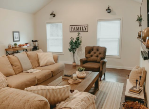 In addition to creating a sense of depth through lighting, it's also important to ensure that natural light is brought into the living room as much as possible. Opt for sheer curtains or blinds, which both allow for ample light without the bulk of heavy curtains, creating a fresher, more spacious look.